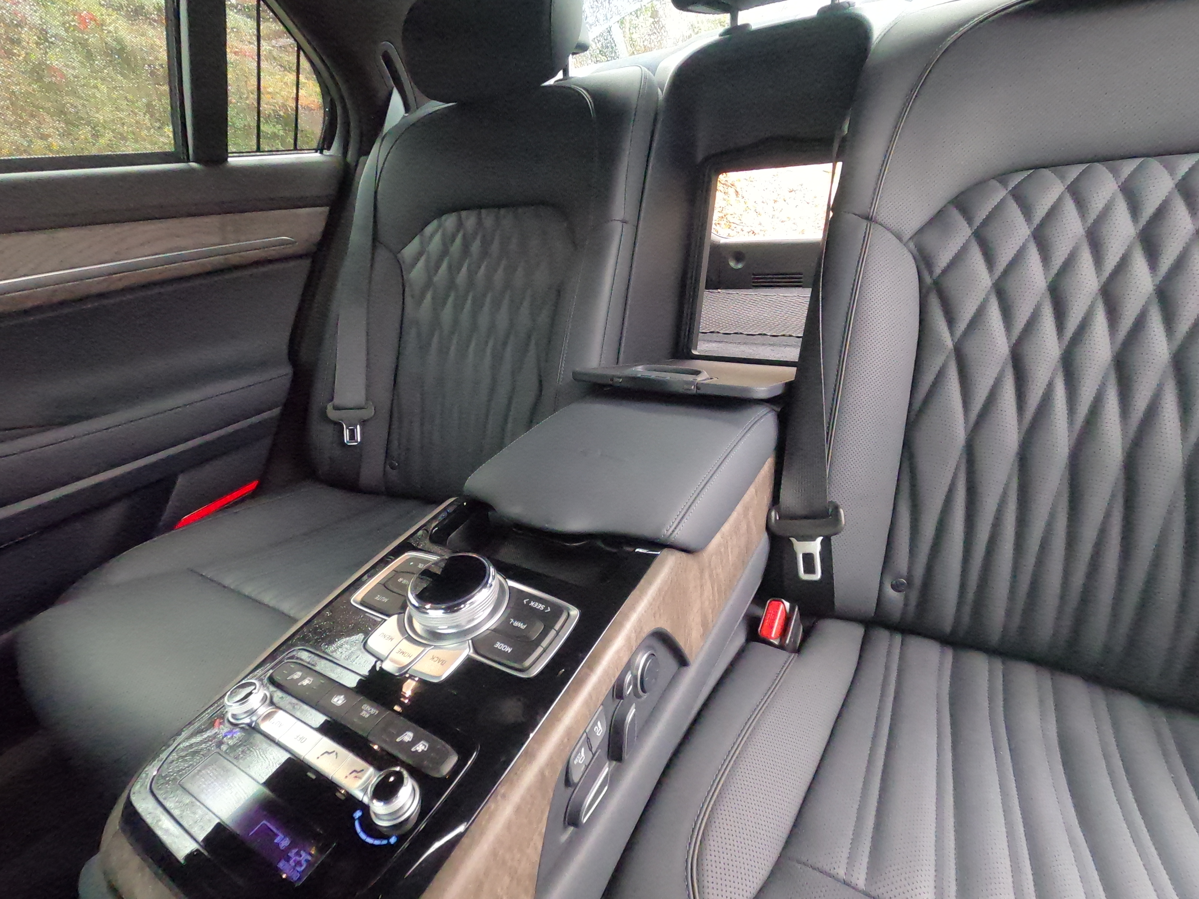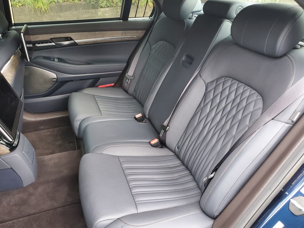 Advantages you ask. Rear seats that are heated and cooled and recline 14-way Left, and 12-way right rear seats. And while they say the G90 seats 5, in reality, this is a car you could pack five people into, though 2 rear seat passengers and 2- front seat occupants will be best served here. The rear legroom is plentiful, which you will want for rear passenger comfort, notice the rear-door size is larger than the front doors. Making getting in and out easy.