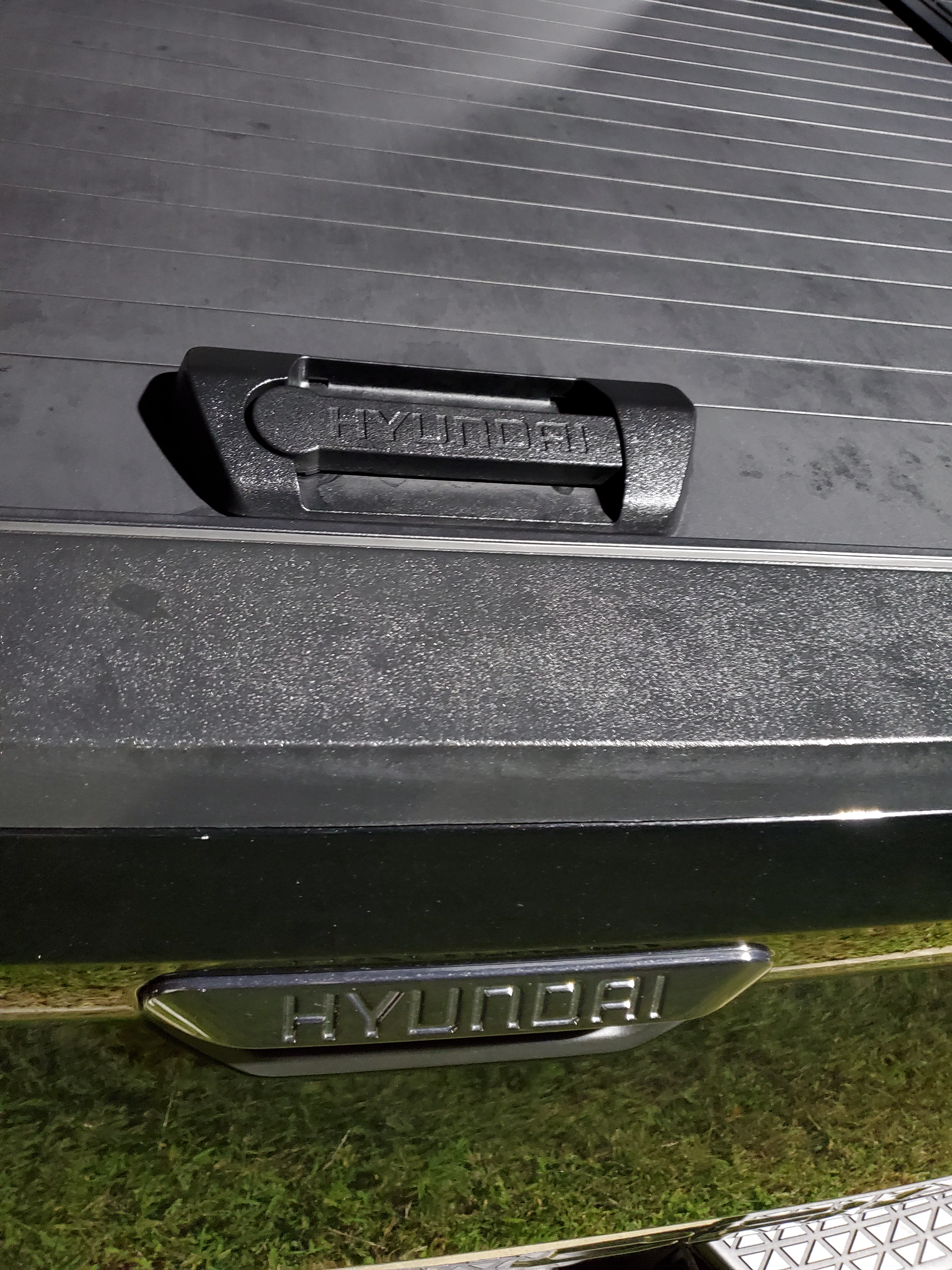 The grill is classic Hyundai with its open grill and snake-like LED Headlights as eyes. The hood is long, the passenger space is well designed on the inside and outside, and the bed while short has a lot to offer from the tambour cover to the power outlets and tie-downs inside.