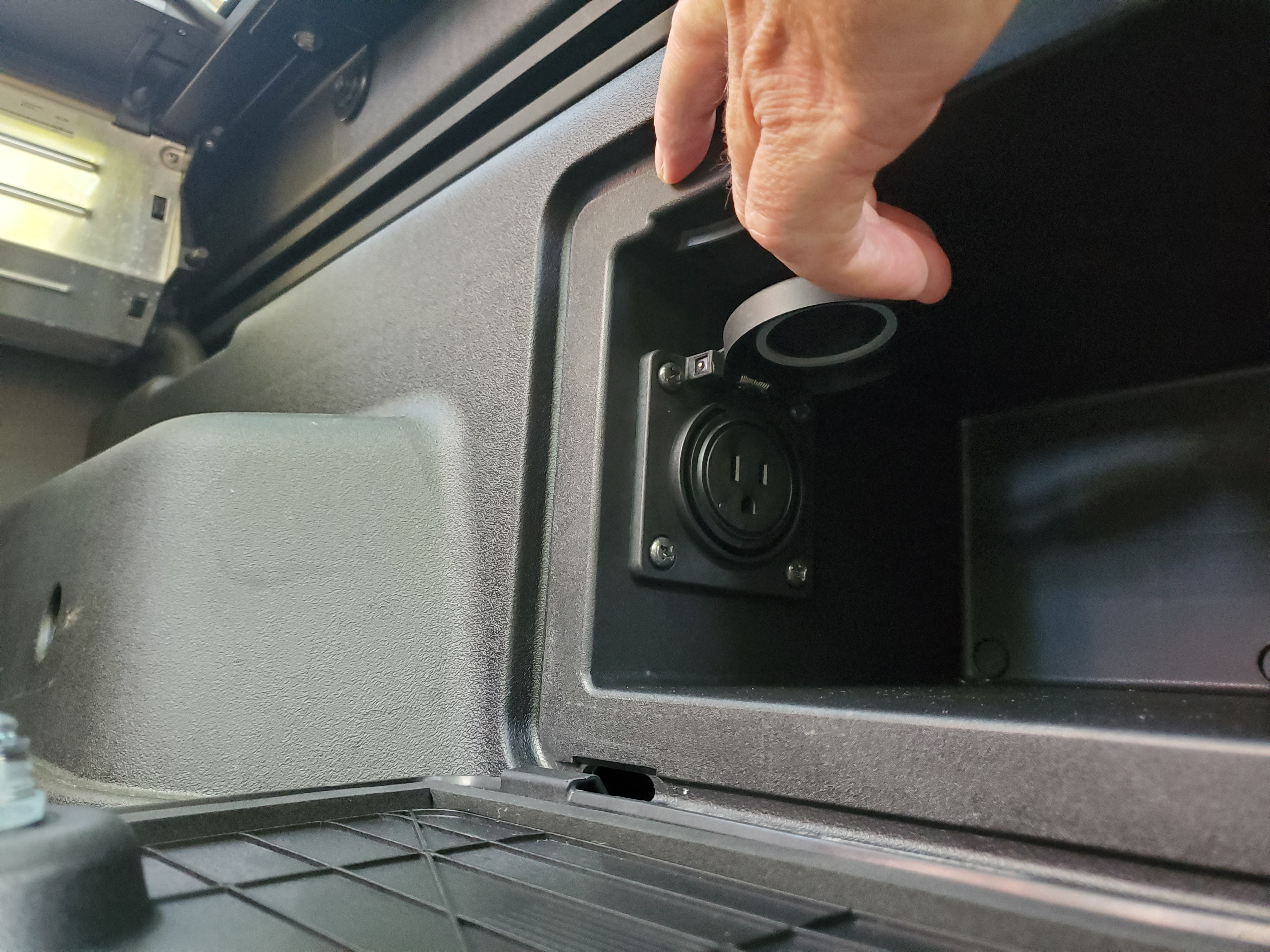 No pickup is worth its salt if it does not have a useable bed for hauling things. While the length of this bed is not much more than five feet, you can still get items from the garden center or bikes and other outdoor toys. The bed has a rough finish liner as well as a couple of cubbies on either side. On the right side of the model, we tested it had a 120v outlet built-in, as well as LED lighting.