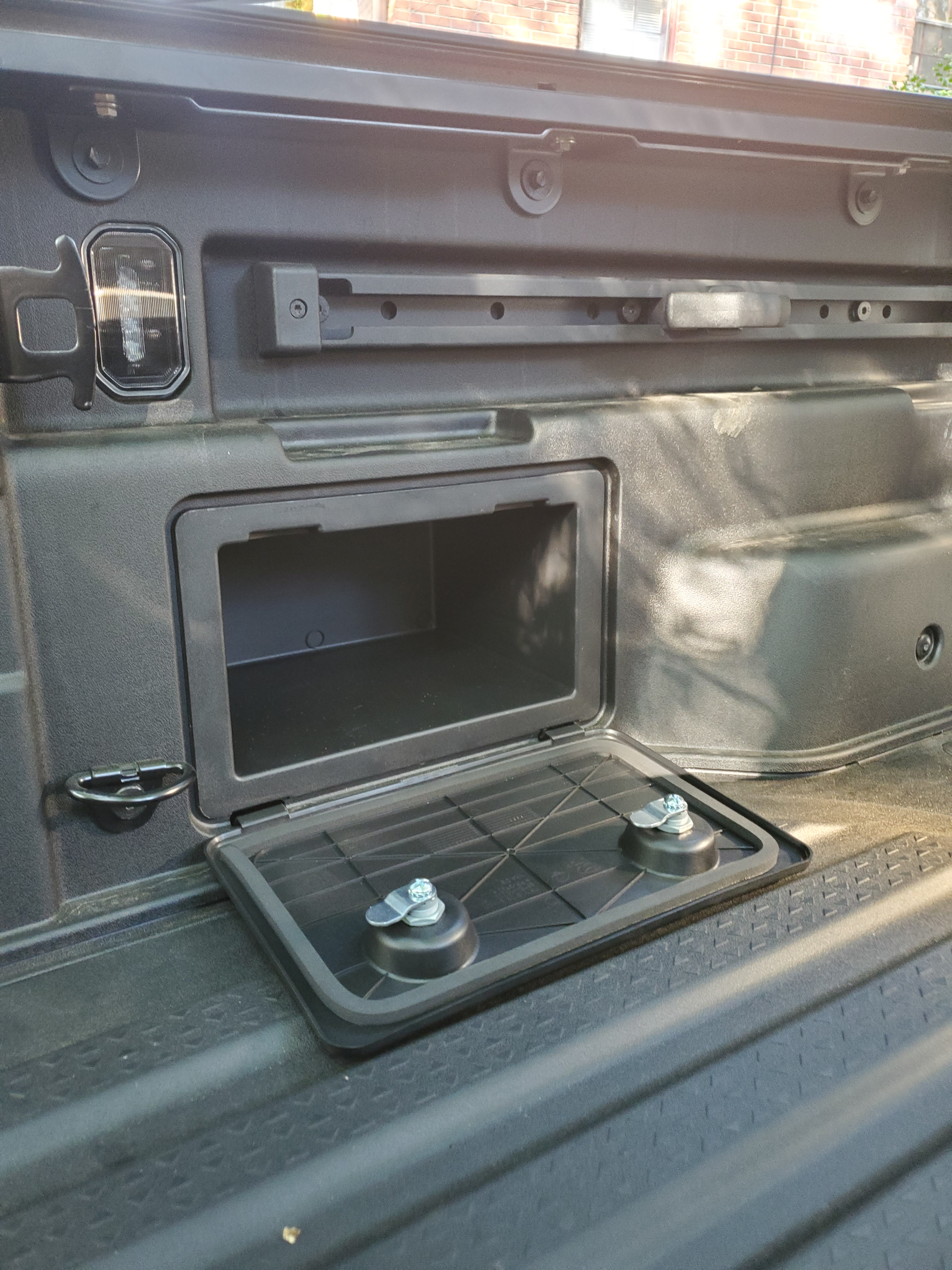 Inside the bed of the Santa Cruz
