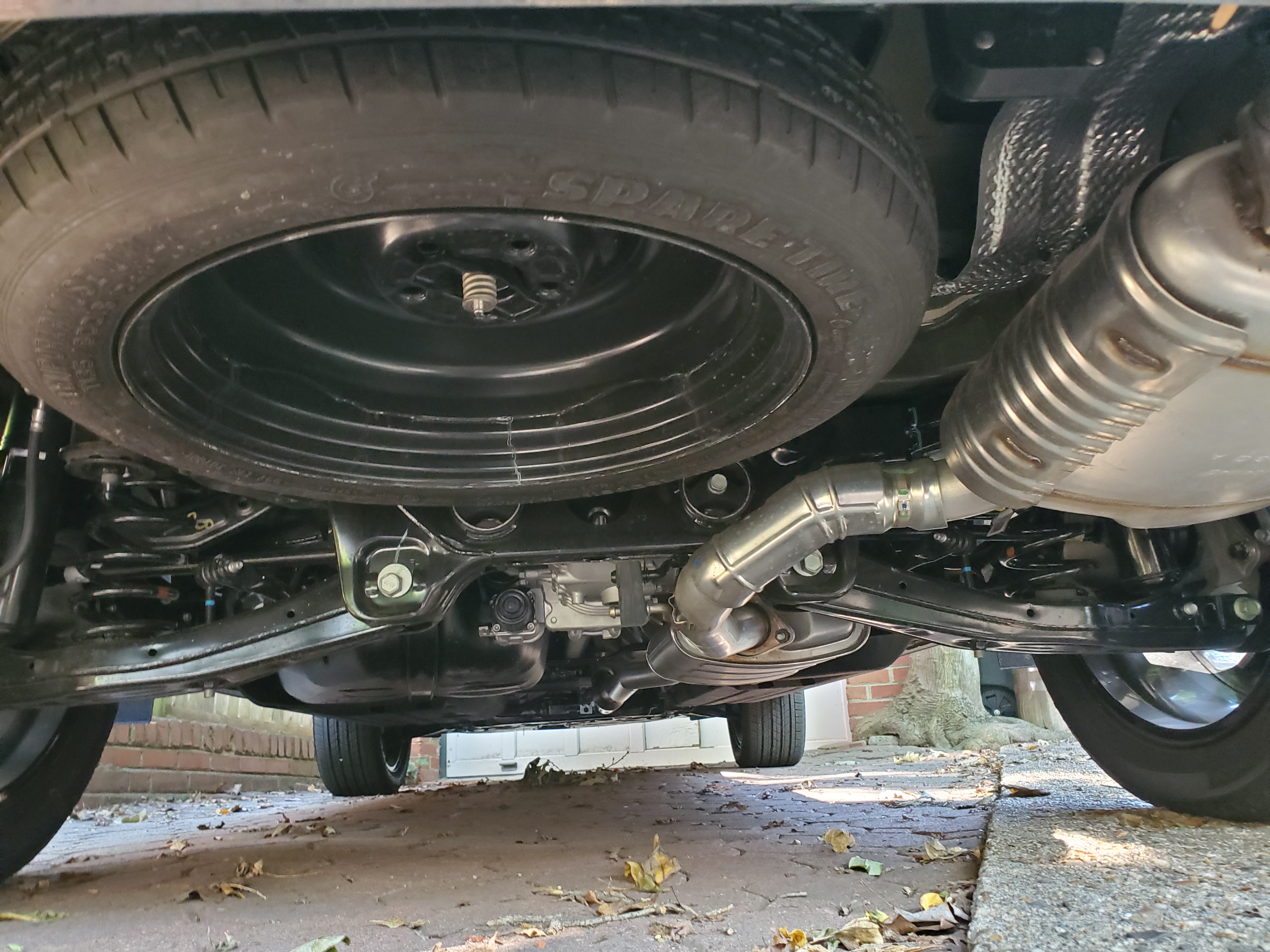 There is a small operable, sliding rear window, and the rear window glass does have electric defrosting wires in it. A small storage area under the rear seats holds the jack and tools on the right side and provides a small storage area on the left side. Not really big enough for anything of significance.
