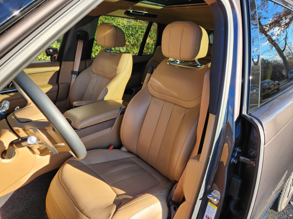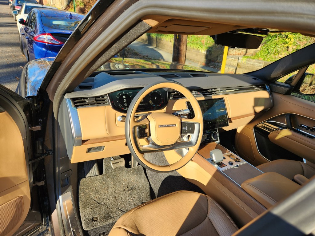 Behind the wheel is a great experience. Switchgear and gauges are where you want them to be and within easy reach. Seating in the Caraway perforated Windsor leather 20-way multi-setting seats that are both heated and cooled. The multi-function steering wheel is covered in grain leather and is electrically adjustable. The Range Rover really benefits from standard all-wheel steering providing excellent maneuverability in tight parking situations and a tight turning radius, which is a great benefit for any vehicle.