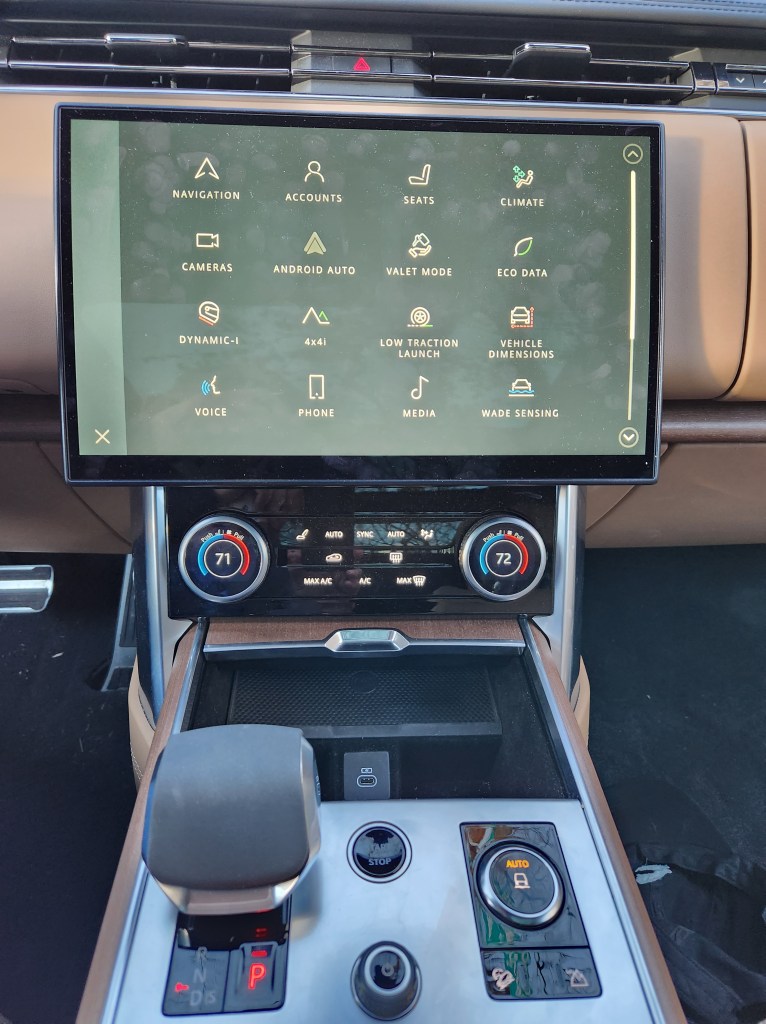 The 13.1-inch infotainment system features a touchscreen with Piv Pro wireless Apple CarPlay® and Android Auto, as well as Voice Control. We found mentioning the word Range Rover in the car often activated the voice control, though having wireless device connections means one less cord floating about the cabin. There are also USB and 12-Volt power sockets throughout the cabin.